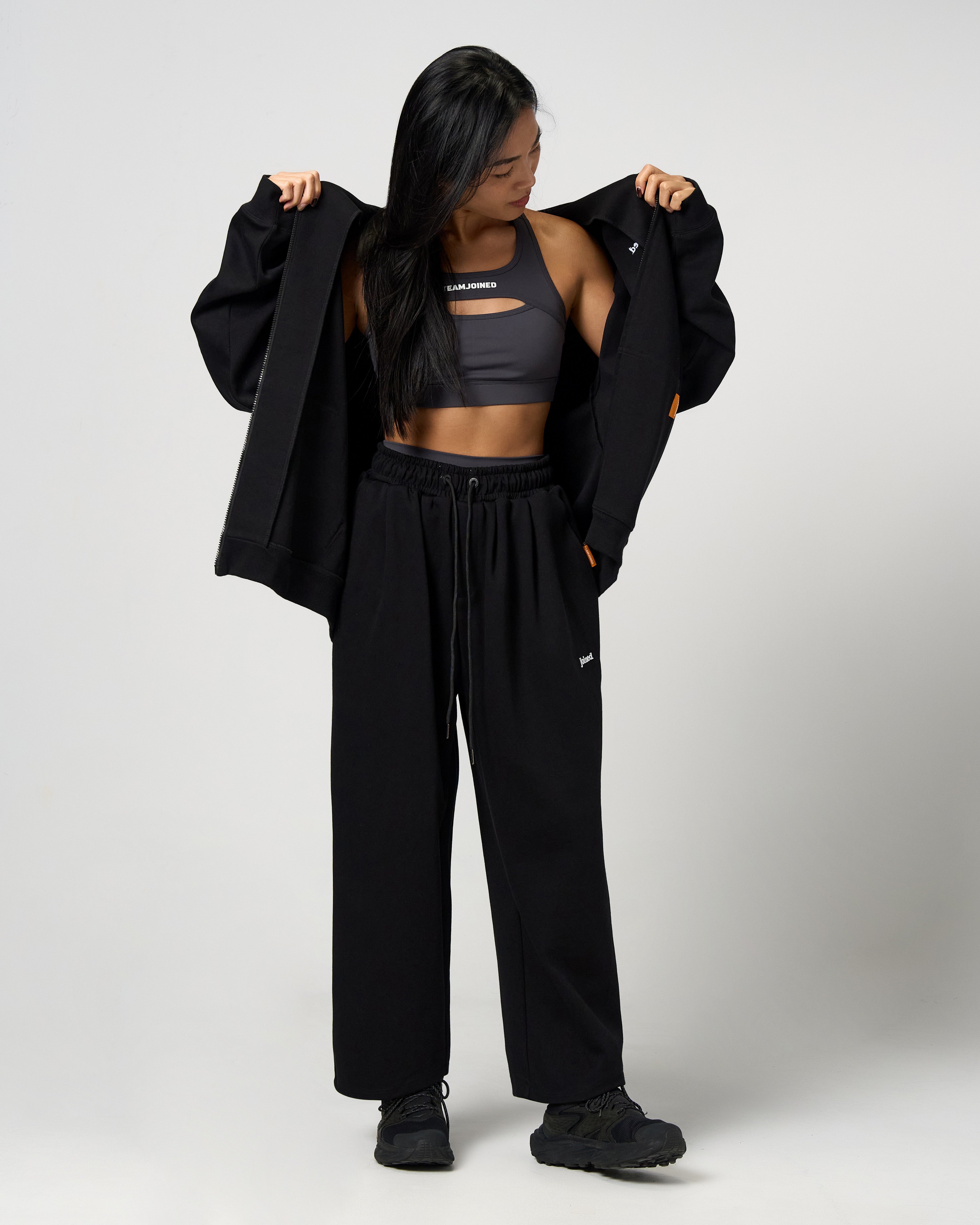 The Joined® Signature Wide Pants use solid, minimal design to create a clean urban athletic look. A relaxed cut, drawcord waist and woven brand label details add layered depth to the simple silhouette.