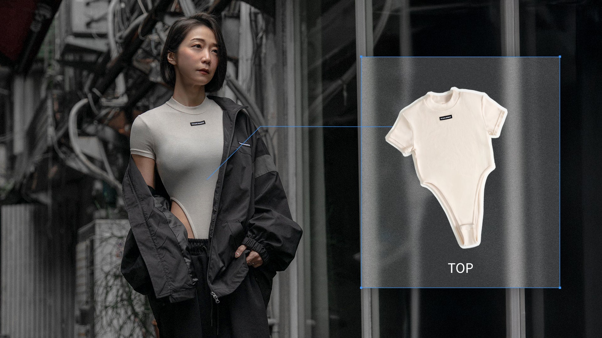 Label長袖高衩BODYSUIT